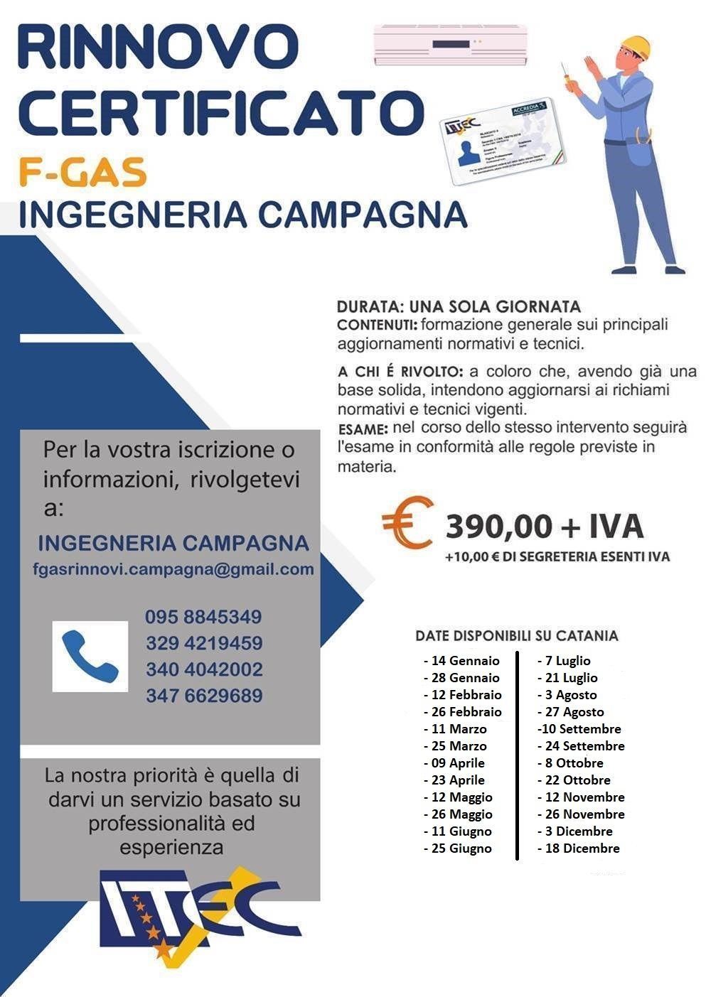 Periodicamente organizziamo corsi e certificazioni che ti permettono di lavorare in diversi ambiti con specializzazione specifiche come il corso F-GAS dedicato al tecnico del freddo, al termine del quale si ottiene l'iscrizione alla banca dati F-Gas con il rilascio del Patentino Frigorista, obbligatorio per tutti coloro che maneggiano i gas refrigeranti fluorurati e gli impianti che li contengono, nonché per poter acquistare il gas refrigerante. Con le competenze che ti verranno impartite durante il corso grazie alla presenza di docenti qualificati potrai operare nel rispetto delle norme in vigore, come tecnico frigorista o come gestore di caldaie termiche regolarmente inscritto al Catasto Termico sia come come installatore che manutentore.